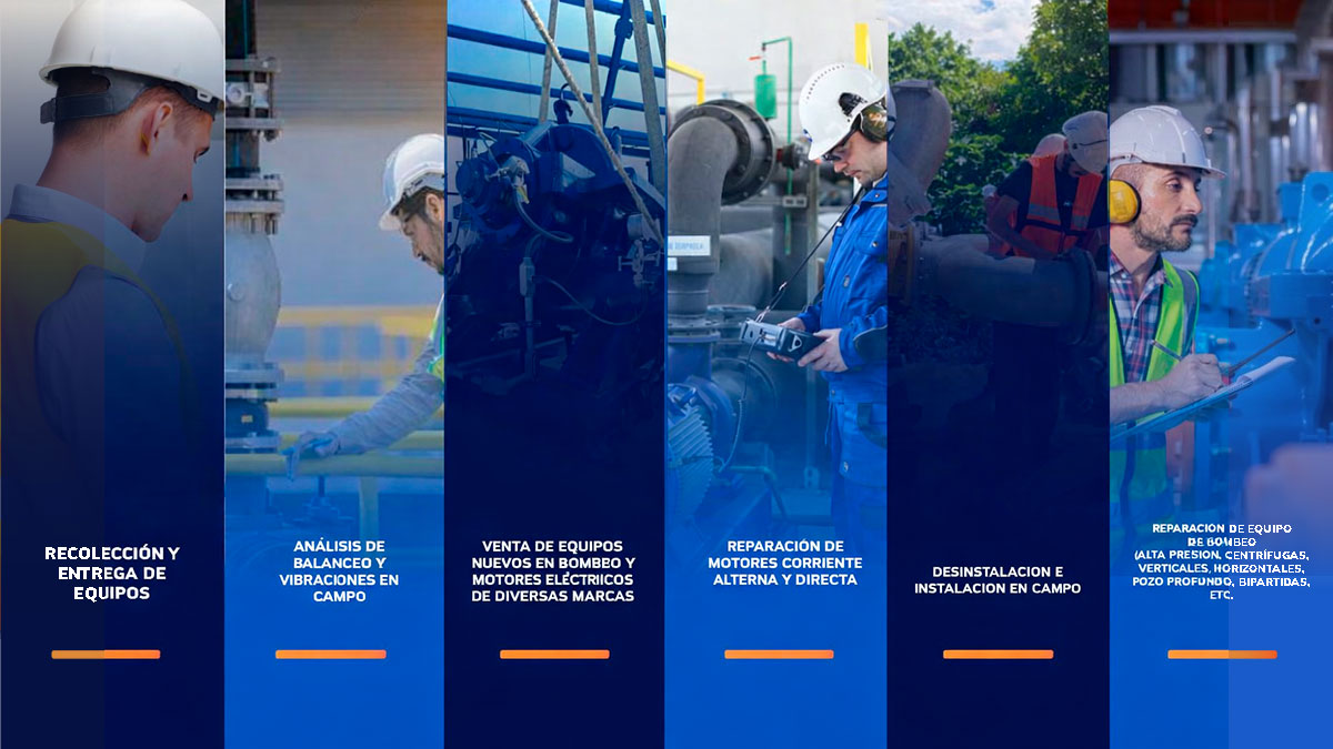 Alambre magneto, papel aislante, cable de salida, sellos mecánicos, rodamientos, aceite dieléctrico, cables de alimentación eléctrica, etc.